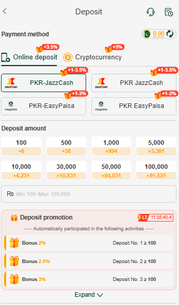 Withdrawals can be made directly through the in-app wallet by selecting a payment method like jazz-cash and easypaisa and submitting a request.